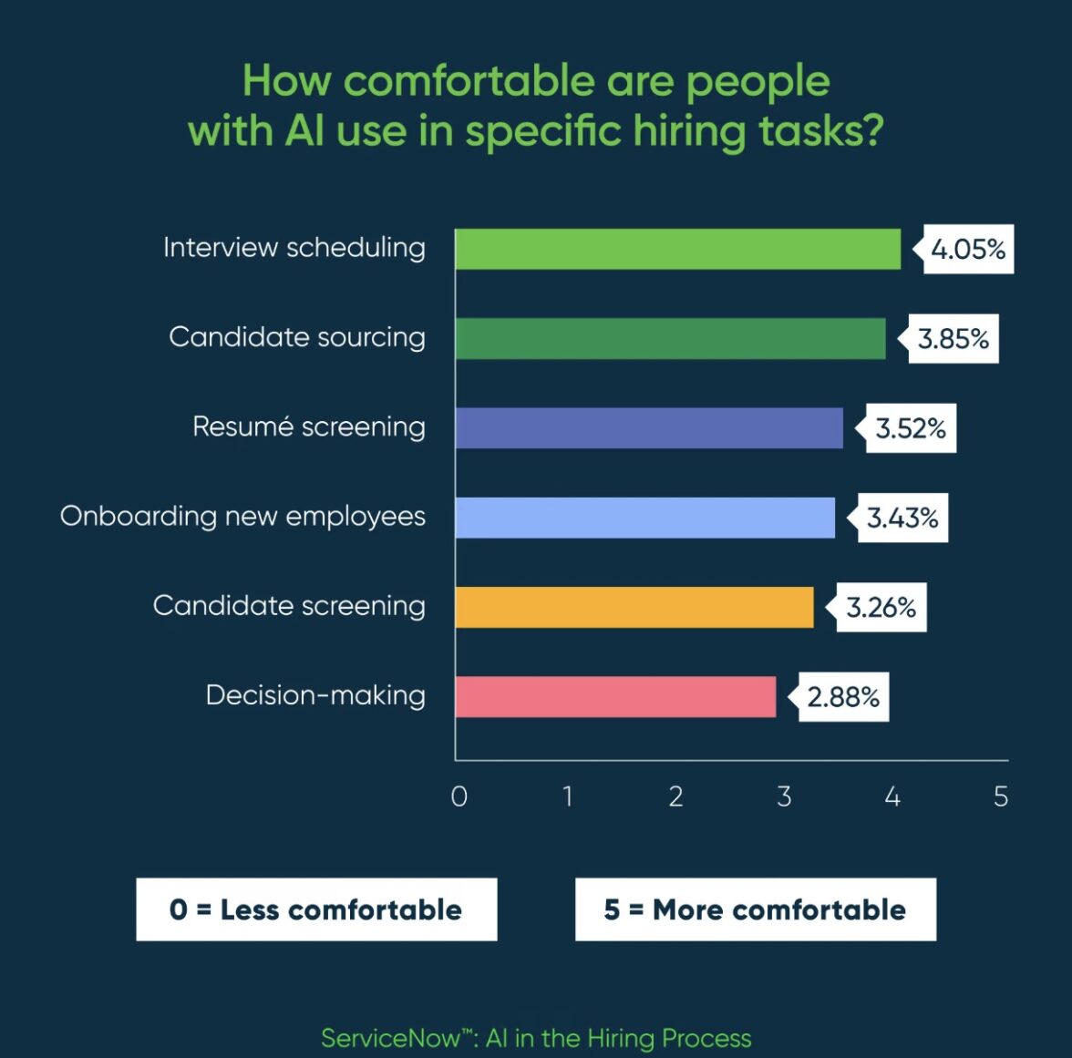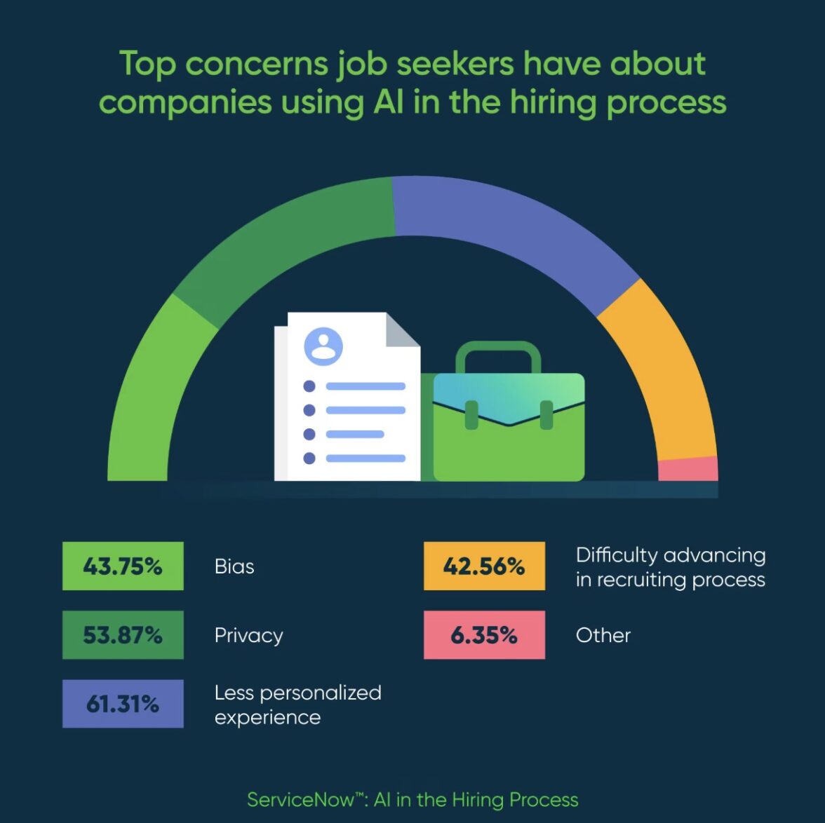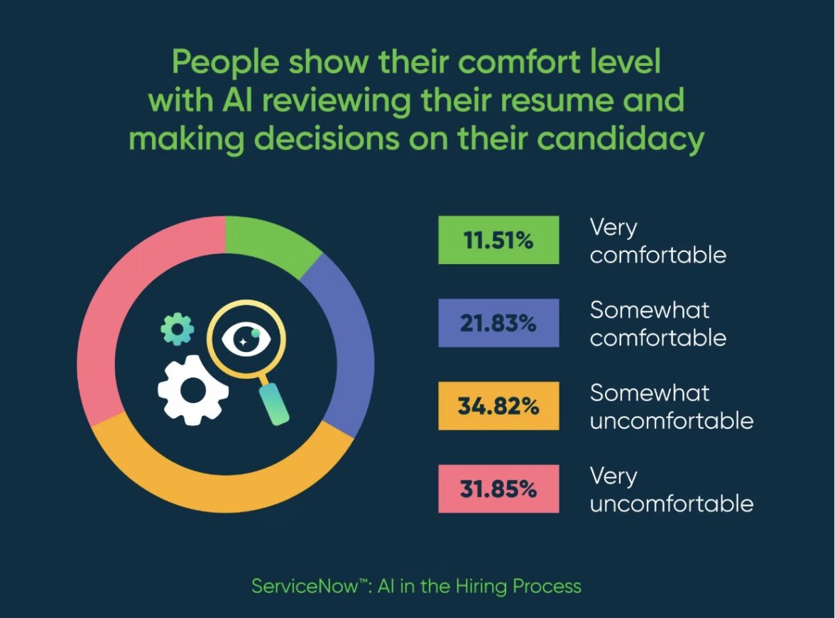 Как показывает исследование ServiceNow, соискатели спокойнее относятся к тому, что технологии искусственного интеллекта могут быть использованы для решения вспомогательных задач.