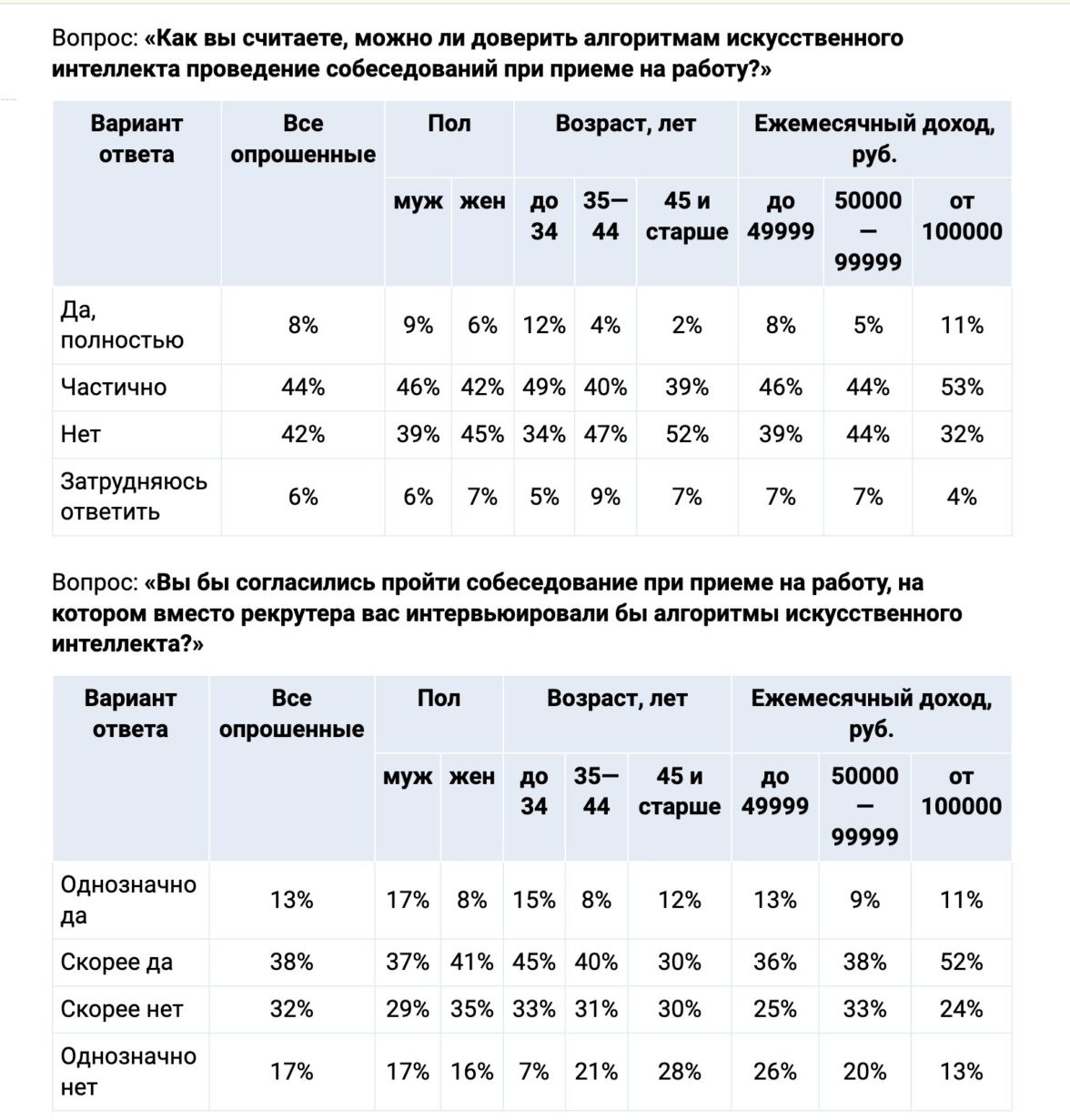 Отношение россиян к использованию алгоритмов ИИ в собеседовании при приеме на работу