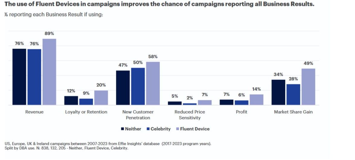 Проанализировав 1,3 тыс. кейсов, Effie и System1 рассчитали, что бренды, использующие отличительные активы, в два раза чаще рапортуют о росте прибыли, чем те, кто их не использует.