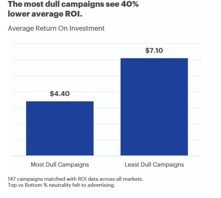 Психологи и нейробиологи утверждают, что когда человек испытывает сильные эмоции, он лучше запоминает информацию. Эмоции облегчают восприятие рекламы. Авторы отчета рассчитали, что возврат средств, вложенных в скучную и неэмоциональную рекламу, на 40% ниже, чем в эмоционально заряженную.