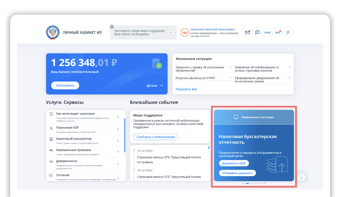 Позволяет предпринимателям сдавать в электронном виде налоговую отчетность. Для этого понадобится заранее сформировать XML-файл вручную, либо в бухгалтерской программе или специальном сервисе. Затем — загрузить его на сайт.