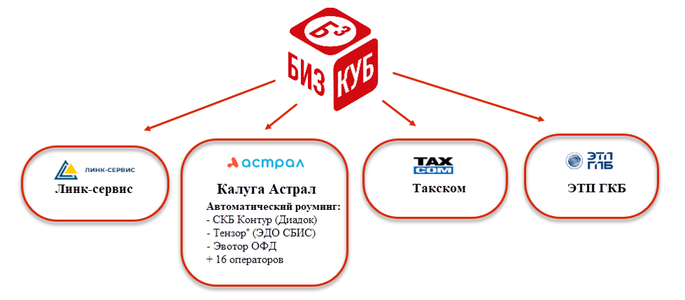 Большинство ведущих операторов поддерживают автоматический роуминг, что упрощает обмен с партнерами, использующими других операторов. Например, при подключении к БизКуб ЭДО можно выбрать одного из четырёх операторов. Входящие документы — бесплатно, а также бесплатно до 100 отправленных за 140 руб. в месяц. Для малого бизнеса этого вполне достаточно.