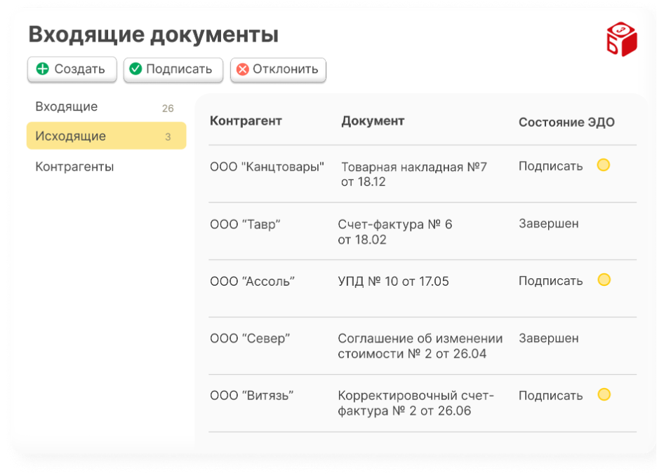 Электронные документы всегда под контролем: подписываются за секунды, мгновенно уходят партнёрам по всей стране, не теряются и имеют полную юридическую силу.