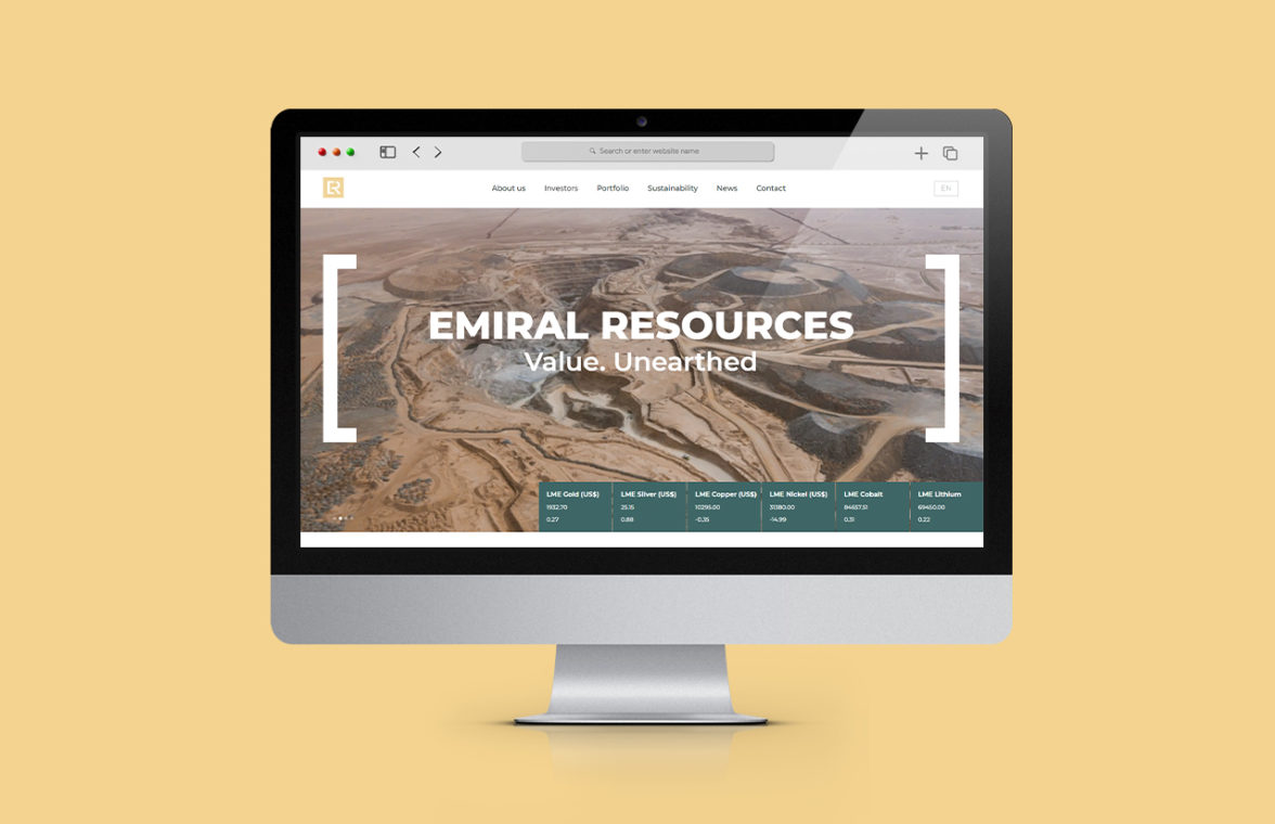 Emiral Resources — международная группа компаний, занимающихся разведкой, добычей полезных ископаемых, консалтингом и инжиниринговыми услугами для горнодобывающей и нефтегазовой промышленности по всему миру. Штаб-квартира компании находится в Дубае (ОАЭ), а офисы и представительства в Москве (Россия), Хартуме (Судан), Нуакшот (Мавритания), Аккре (Гана). Компания обратилась в агентство, чтобы кодифицировать ценность бренда Emiral Resources и дать ему смысловое, вербальное и визуальное воплощение.