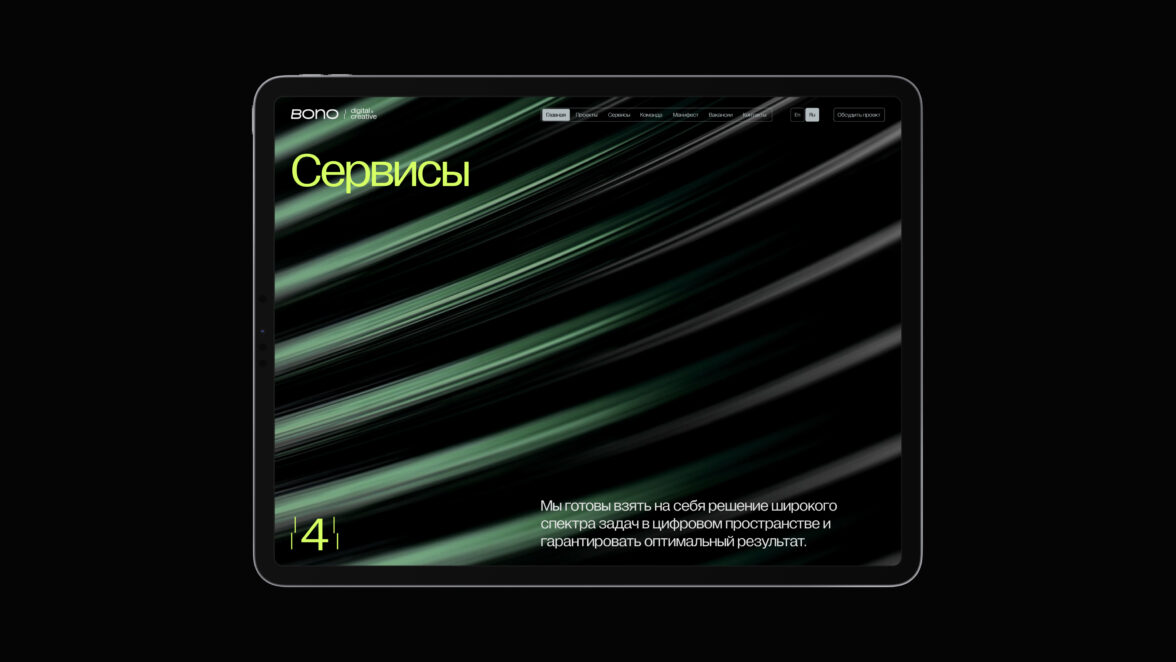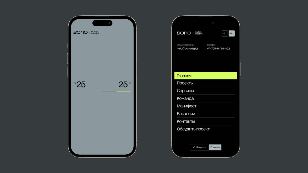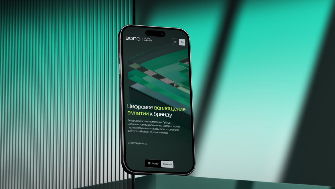 За 12+ лет на рынке из небольшой студии Bono digital x creative успело вырасти в одного из лидеров рынка. В портфолио Bono — комплексные проекты, над которыми работает команда более чем из 50 человек, и digital-награды. Агентство работает как с российскими, так и с зарубежными заказчиками и постепенно строит международную сеть с представительствами в разных странах. В 2023 году стало понятно, что прежняя айдентика и сайт агентства перестали отражать его компетенции, характер и масштаб, поэтому был запущен процесс ребрендинга. Его результатом стало новое позиционирование, фирменный стиль и сайт.