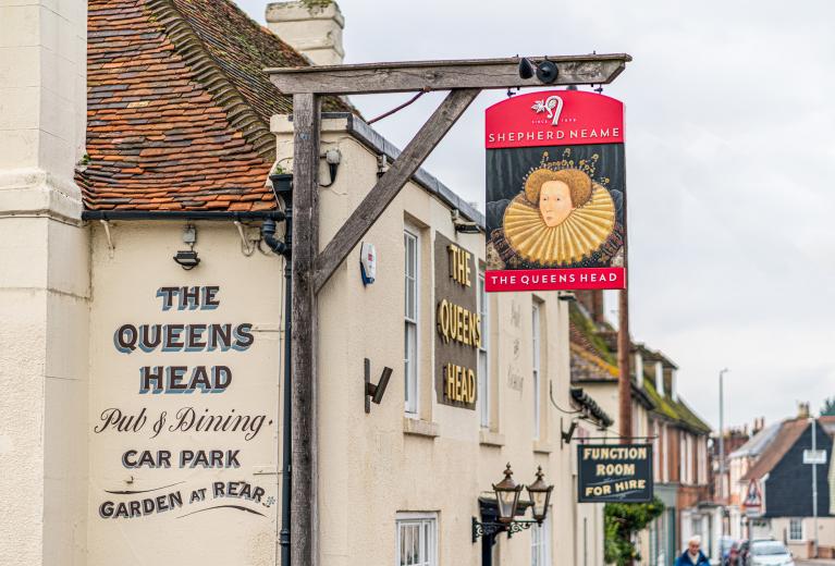 Название Queens Head с большой долей вероятности указывает, что данное заведение получило свое имя в правление королевы Елизаветы I (1558-1603) или королевы Виктории (1837-1901). Точнее можно определить по вывеске.