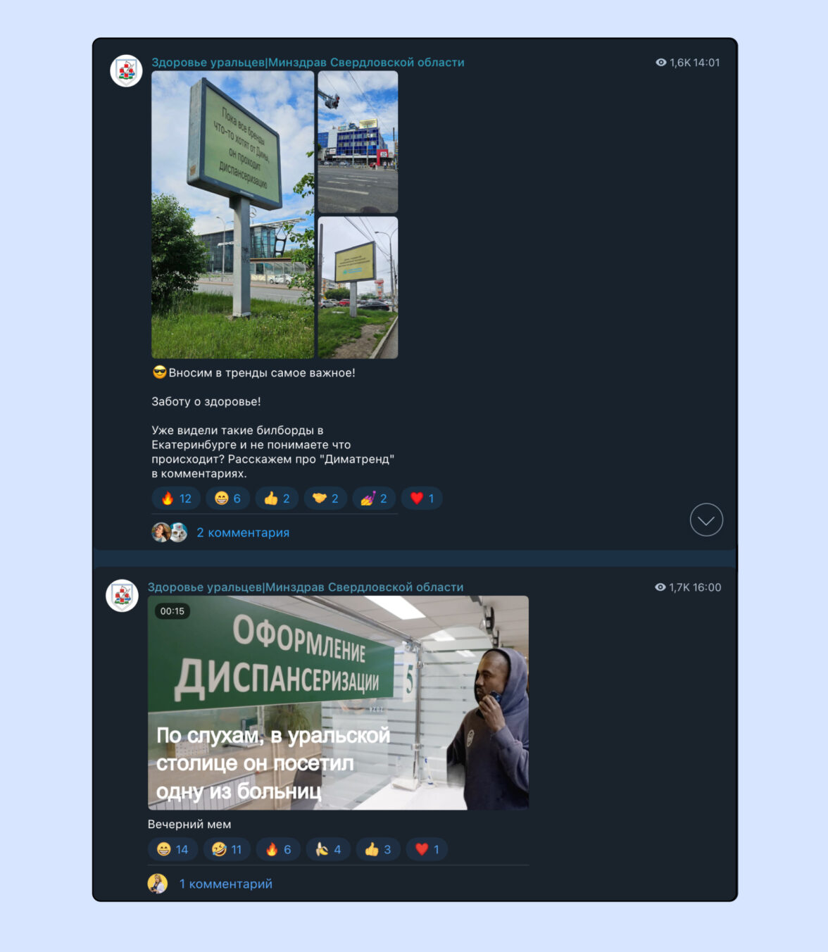 Эсэмэмщики канала «Здоровье уральцев» обыграли мемы с Канье Уэстом и Димой, чтобы напомнить о диспансеризации. Получилось креативно, посты собрал в три раза больше реакций, чем другие публикации.