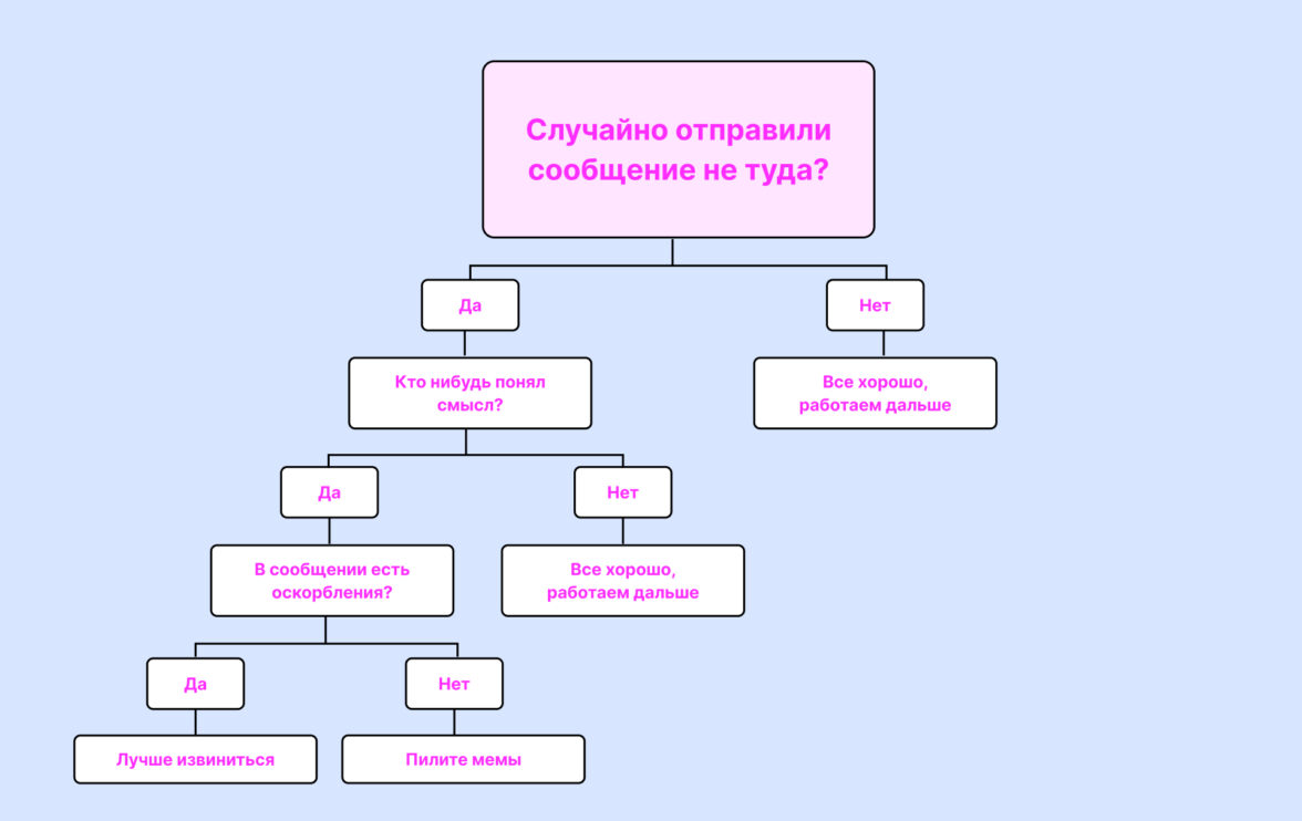 Вдохнули-выдохнули и не паникуем. Как мы увидели на примерах выше, «нетудашки» могут сыграть даже на руку каналу. Чтобы определить план действий, прогоните сообщение по нашей схеме.