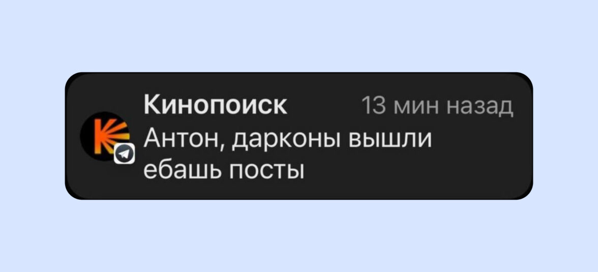«Кинопоиск»: «Антон, дарконы вышли. Еб*шь посты»