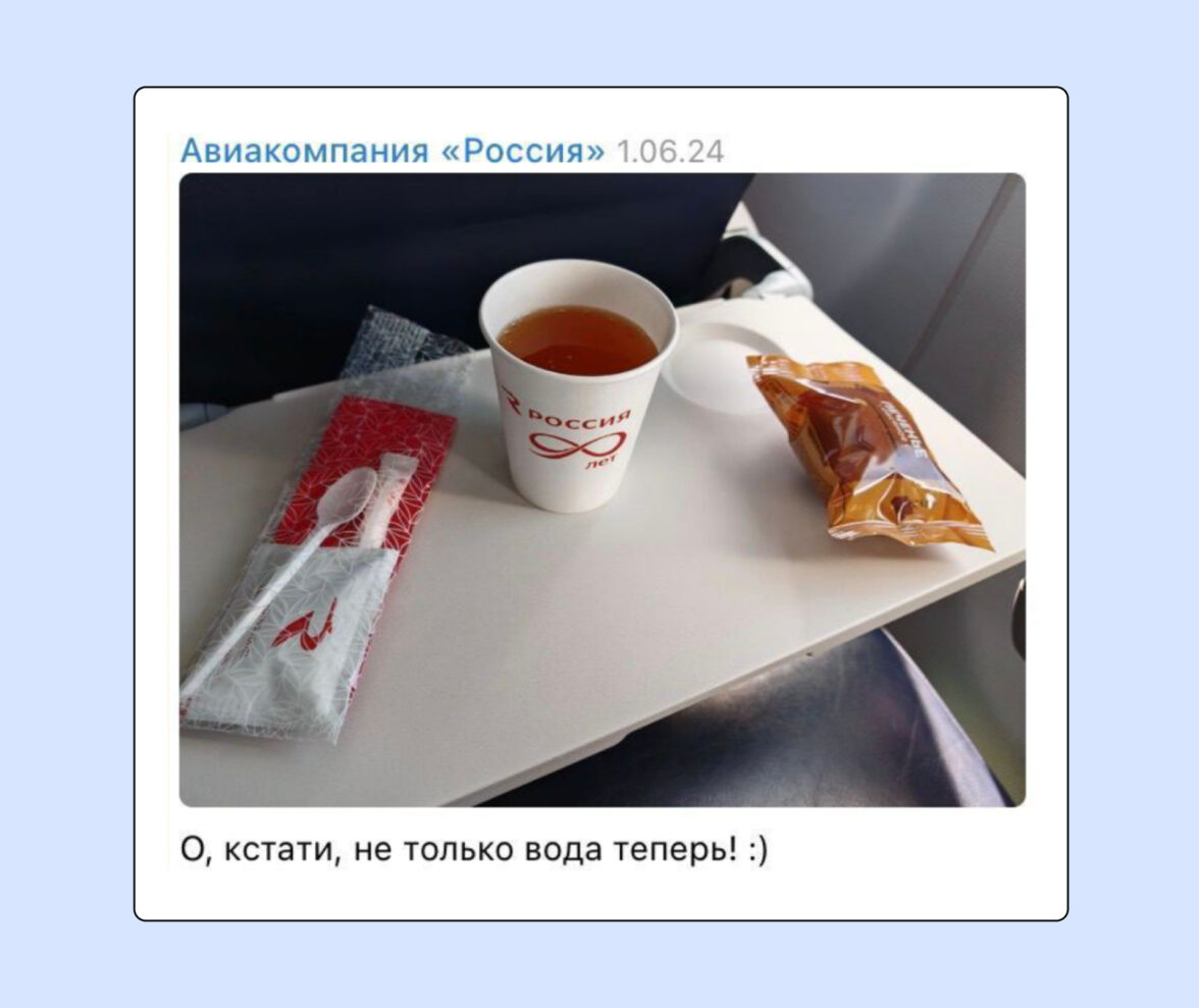 Авиакомпания «Россия»: «О, кстати, не только вода теперь!»