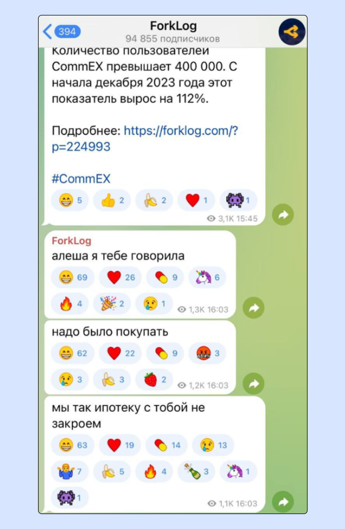 Аудитории откликнулось: пост собрал в 10 раз больше реакций, чем остальные публикации. Сообщения быстро удалили — и зря! Все криптаны ощущают себя Алёшей, когда смотрят на курс битка в 2019-м…