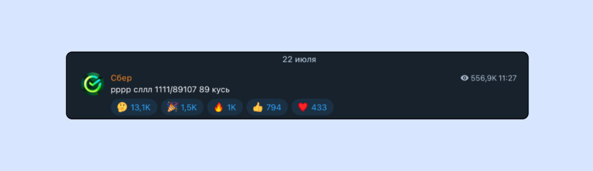 Недавно эсэмэмщик «Сбера» выдал набор букв в телеграм-канале.