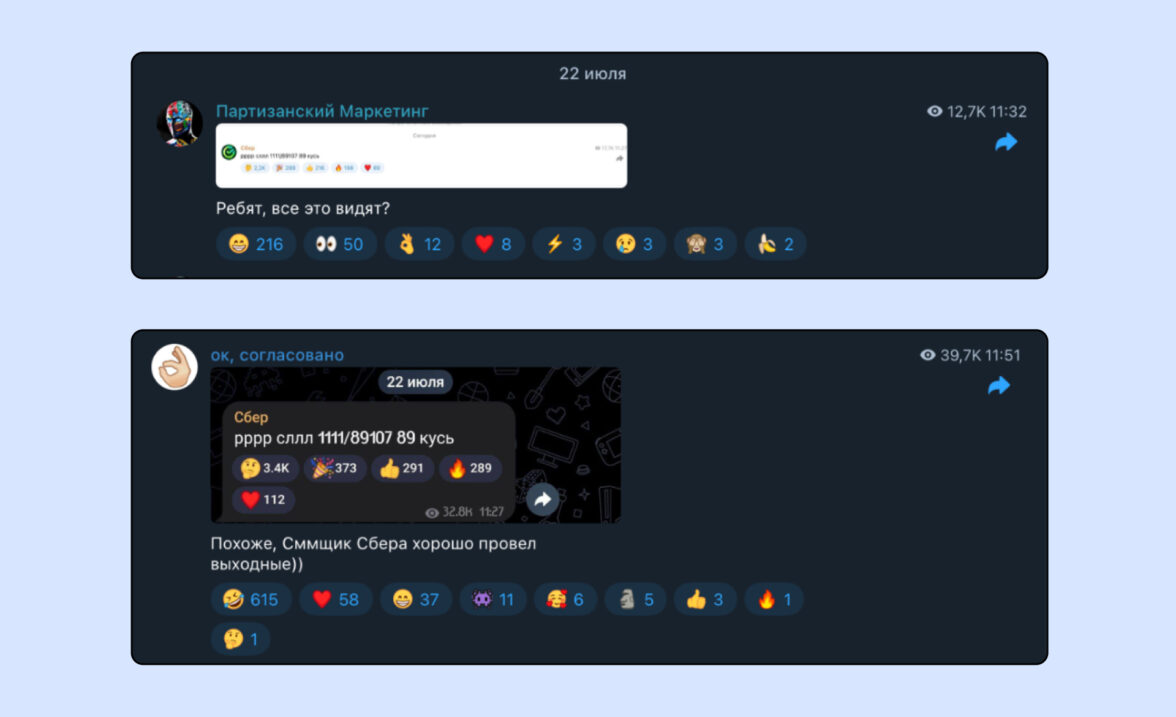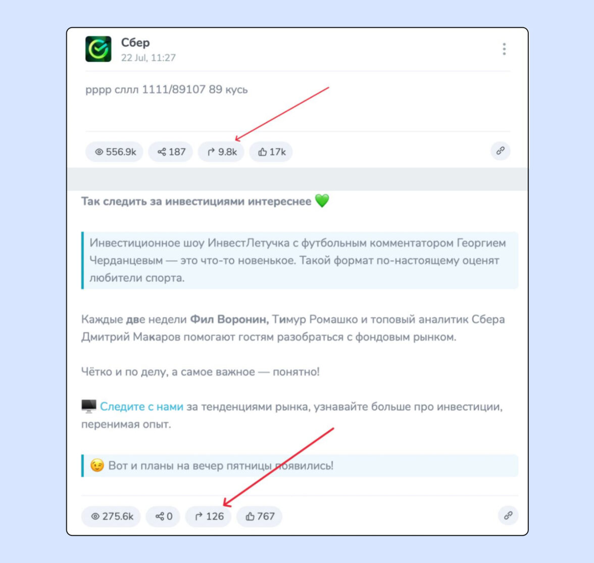 «Сбер» немного выждал и рассказал, что это нативка — так компания анонсировала появление нового маскота кошки Куси. Пост успели раскидать по телеграм-каналам, за счёт этого о новом маскоте узнало больше людей.