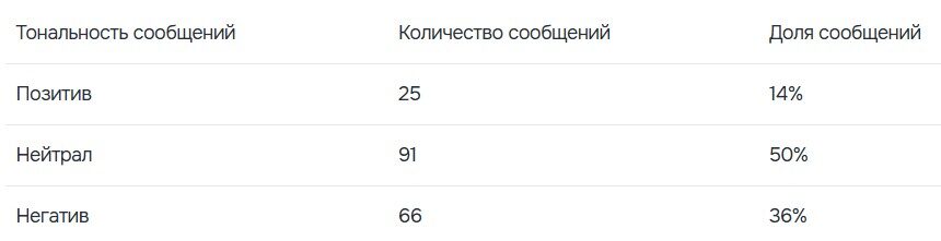 То из-за разницы между позитивом и негативом в 22 п.п., тональность сюжета будет определена как негативная.
