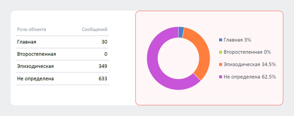 Диаграмма с данными о сообщениях с разной ролью объекта мониторинга.