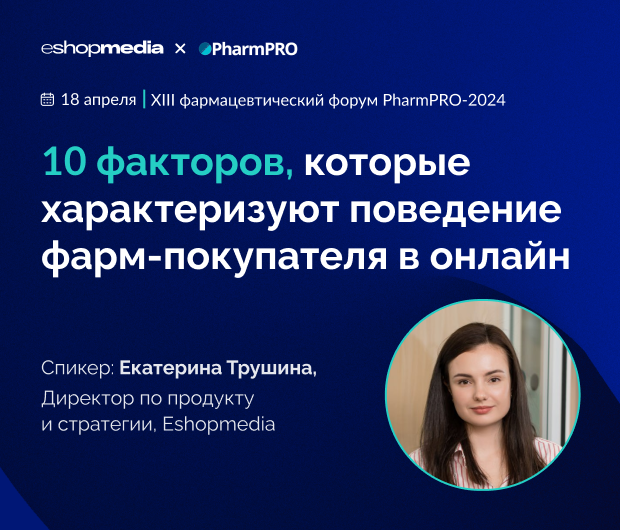 Директор по продукту и стратегии агентства Eshopmedia Екатерина Трушина поделится характеристиками покупательского поведения в своем выступлении «10 фактов, которые характеризуют поведение фарм-покупателя в онлайн» на XIII фармацевтическом форуме PharmPRO-2024.
