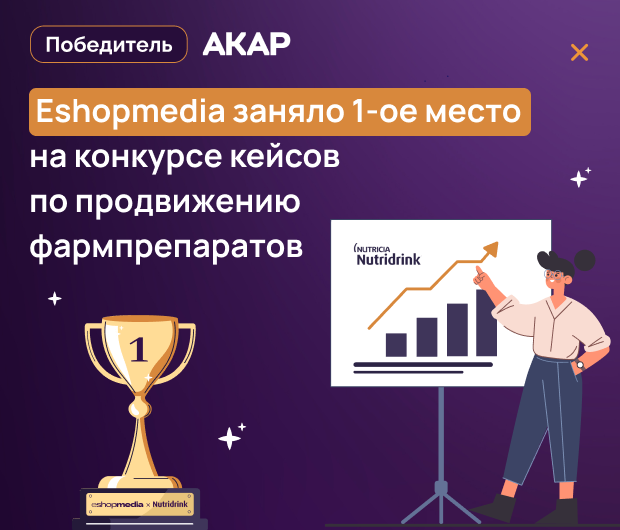Спешим поделиться, что ритейл-медиа агентство Eshopmedia заняло 1 место в конкурсе с кейсом «Nutridrink: как повысить знание о продукте и увеличить ROI до 849%». Продукт продвигали на сайте самой большой аптеки страны, Аптека.ру, с помощью рекламной платформы Аптека.Media Ads. Подробности стратегии и полученные результаты (план по продажам удалось перевыполнить в 4 раза) можно узнать по ссылке у нас в блоге.