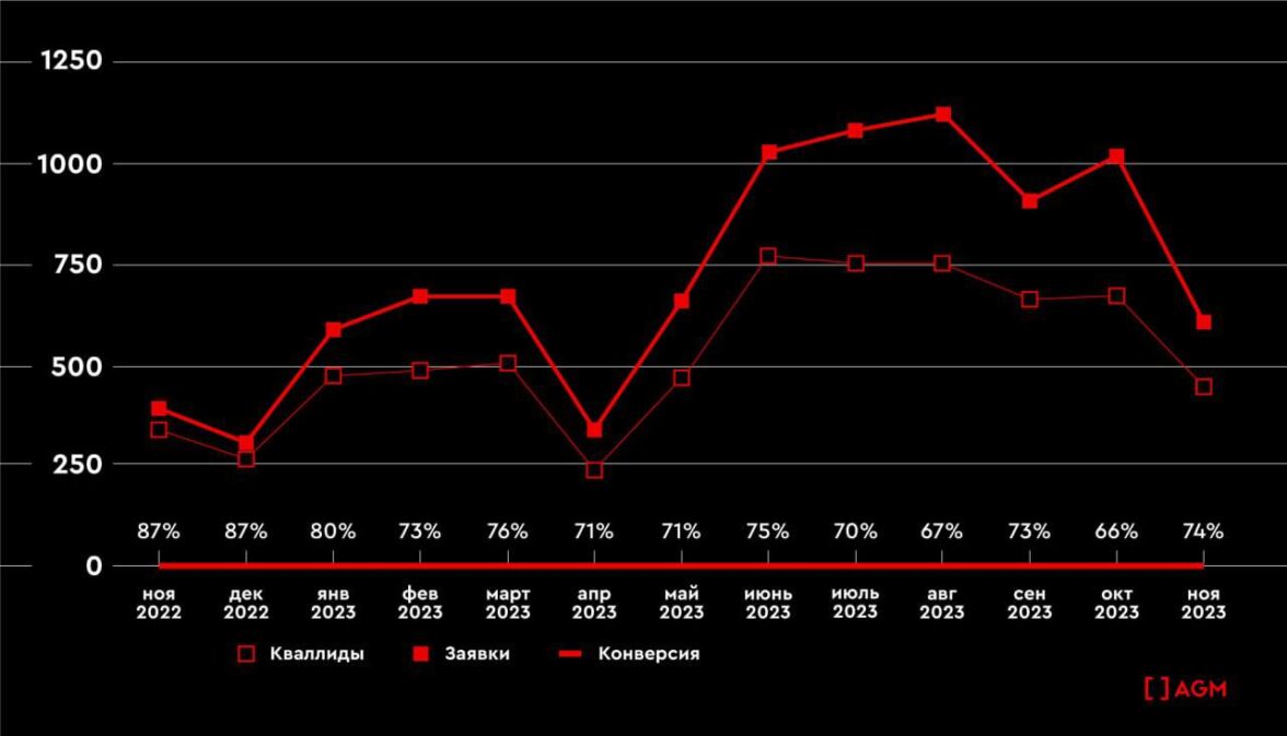 оказался весьма впечатляющим: объем обращений с ноября 2022 года по ноябрь 2023 года вырос в 1,4 раза.