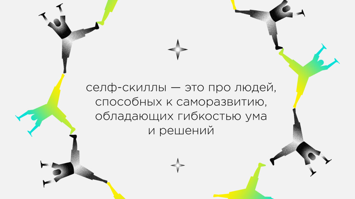 Меняется запрос потребителя — меняется предложение. И так же должны меняться и развиваться специалисты, чтобы в полной мере соответствовать законам времени. Вы под это либо подстраиваетесь, либо нет. Теперь важны профессионалы не только с так называемыми хард- и софт-, но и с селф-скиллами. Селф — это про людей, способных к саморазвитию, обладающих гибкостью ума и решений.