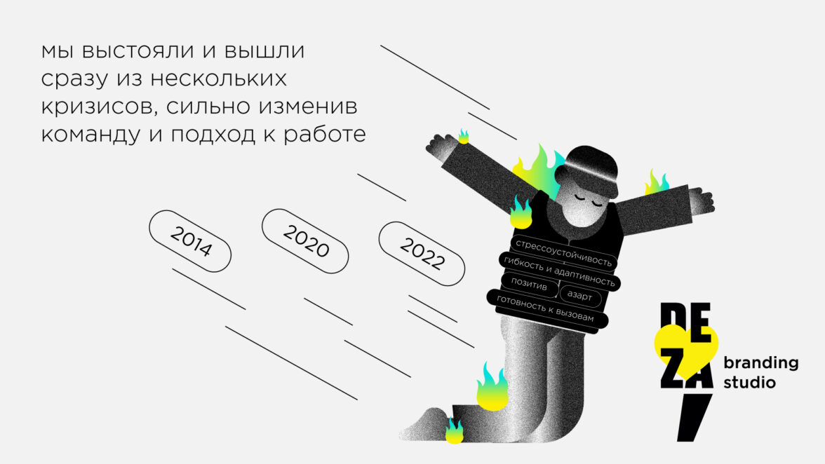 Несколько кризисов подряд — тоже челлендж. В частности, 2020 год — пандемия: тогда наша студия чуть не развалилась. И не только из-за перехода людей на локдаун и удаленку. Рынок не понимал, что делать с ситуацией; огромное количество компаний заперло в стол все маркетинговые бюджеты. Клиенты уходили. И вообще не было понятно, есть ли свет в конце тоннеля. Но мы выстояли и вышли из этой истории, сильно изменив команду и подход к работе.