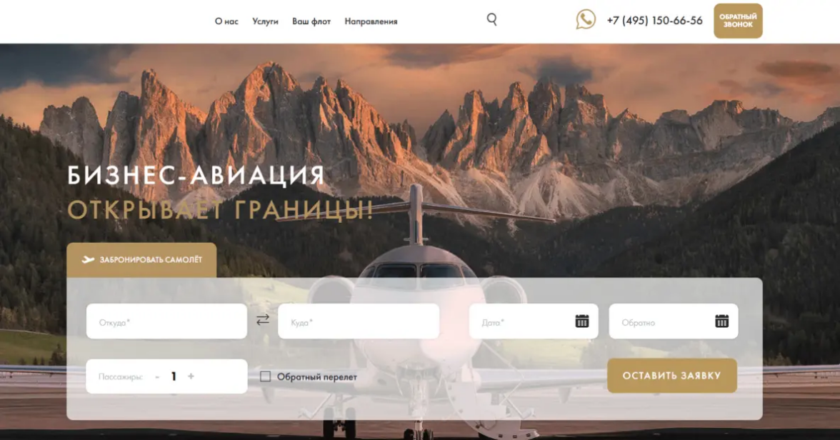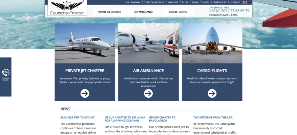 Вот как выглядит сайт крупнейшей в ЕС компании с частными джетами и авиаперевозками