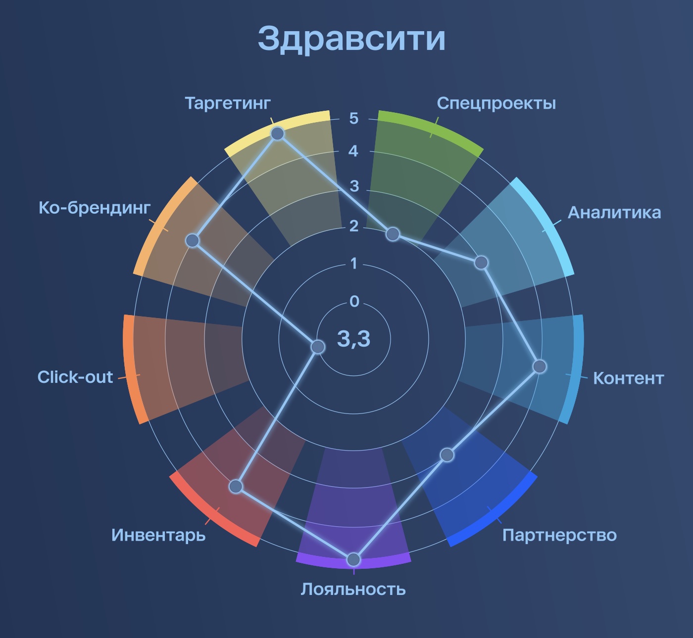 Лидером по инструментарию и аналитике стал Ozon — он набрал 4,4 балла и по четырем направлениям получил высшие оценки. «Яндекс Маркет» занял второе место (4,1 балла). E-com-платформа ГК «Протек» — «Здравсити» — по развитию рекламных инструментов, возможностям аналитики и таргетинга практически догнала «Мегамаркет» — 3,1 и 3,2 балла соответственно. Пятое место у еще одного специализированного маркетплейса «Ютека» — он набрал 3 балла. Шестое место поделили Wildberries и аптека «Вита» с 2,2 баллами. Седьмое место у «Еаптеки» (2,1 балла), восьмое — «Планета здоровья» (1,7 балла), девятое — «Аптека.ру» (1,1 балла).