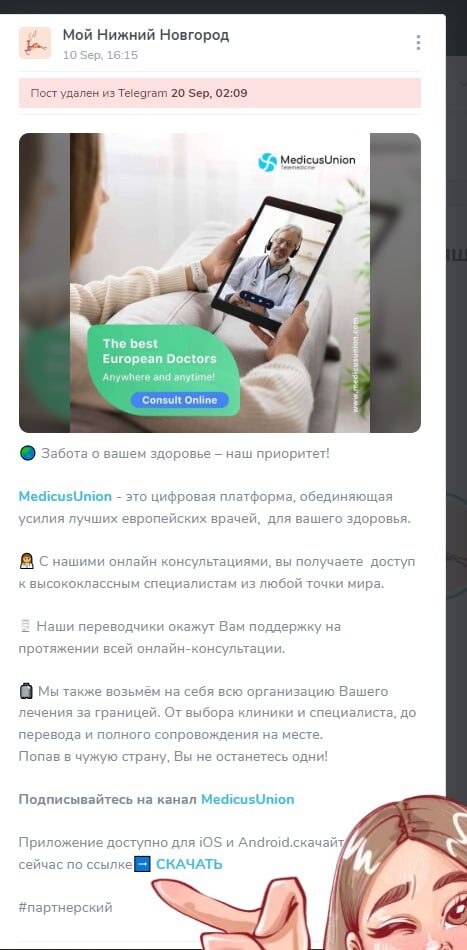 Итак, действительно официально возбуждено дело в отношении паблика Мой Нижний Новгород, который очень известен в своем регионе и имеет около 90 тыс. подписчиков. Данный городской портал типичен для большинства российских населенных пунктов — от малых городов (в том числе поселков городского типа) до городов миллионников. Городской портал рассказывал о жизни города и региона в плане различных городских новостей, событий, спортивных мероприятий, происшествий, ярмарках, выставках, концертах и посты в паблике не требовали никакой маркировки в плане исполнения закона о рекламе (статья 18.1). Однако, как и все паблики, периодически происходили рекламные интеграции как напрямую от рекламодателей, так и через биржу Telega.in. Вот здесь и начались проблемы после 01 сентября 2023 года, когда за отсутствие атрибутов маркировки рекламы и отчетности в ОРД ФАС и РКН могут оштрафовать участников рекламной цепочки по статье 18.1 Закона о Рекламе. Дело в том, что основной поток рекламных интеграций шел через биржу Telega.in. Данная биржа, естественно, принимала во внимание необходимость исполнения закона о маркировке рекламы. Вот ее подробная инструкция для владельцев сервиса.