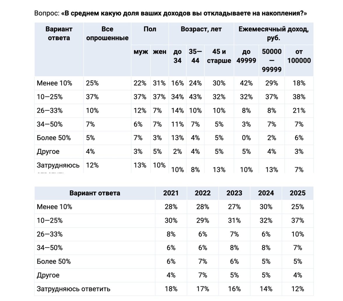 Какую часть своих доходов россияне откладывают на накопления