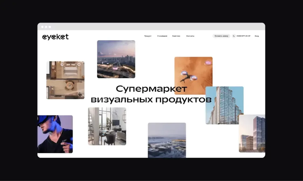 Сайт супермаркета визуального контента для застройщиков Eyeket