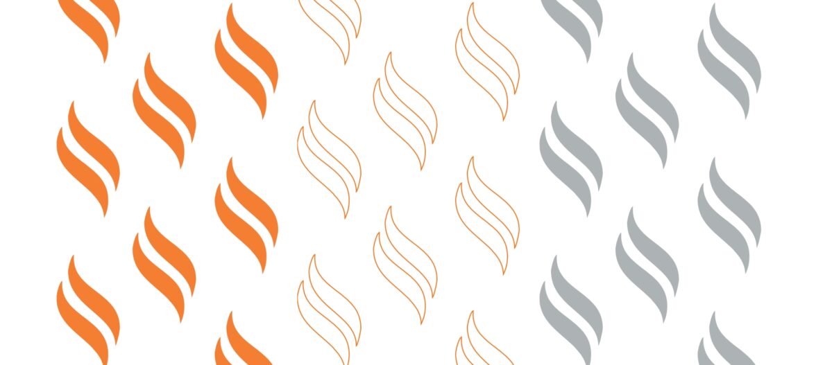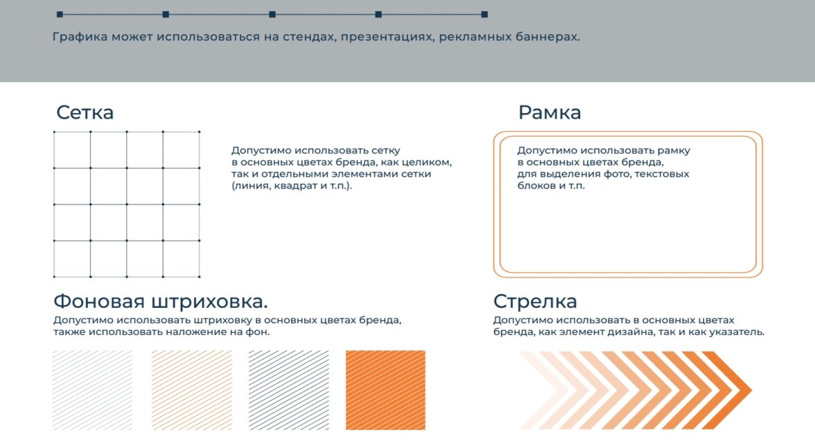 Фирменная палитра состоит из трех цветов: оранжевого, светло-серого и темно-синего. Паттерн образован из логотипа, выделяя «языки пламени».