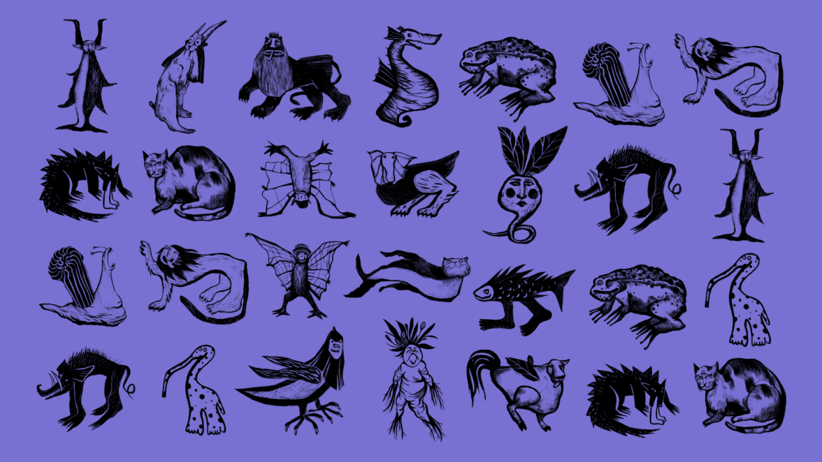 Дизайнеры перерыли множество источников и отобрали ряд существ. Нам необходимо было их отрисовать в едином харизматичном стиле. Нам помогла Вика Храмцова — иллюстратор со своим особенным «диким» стилем. Причем степень «дикости» изображений мы определяли и корректировали опытным путем.