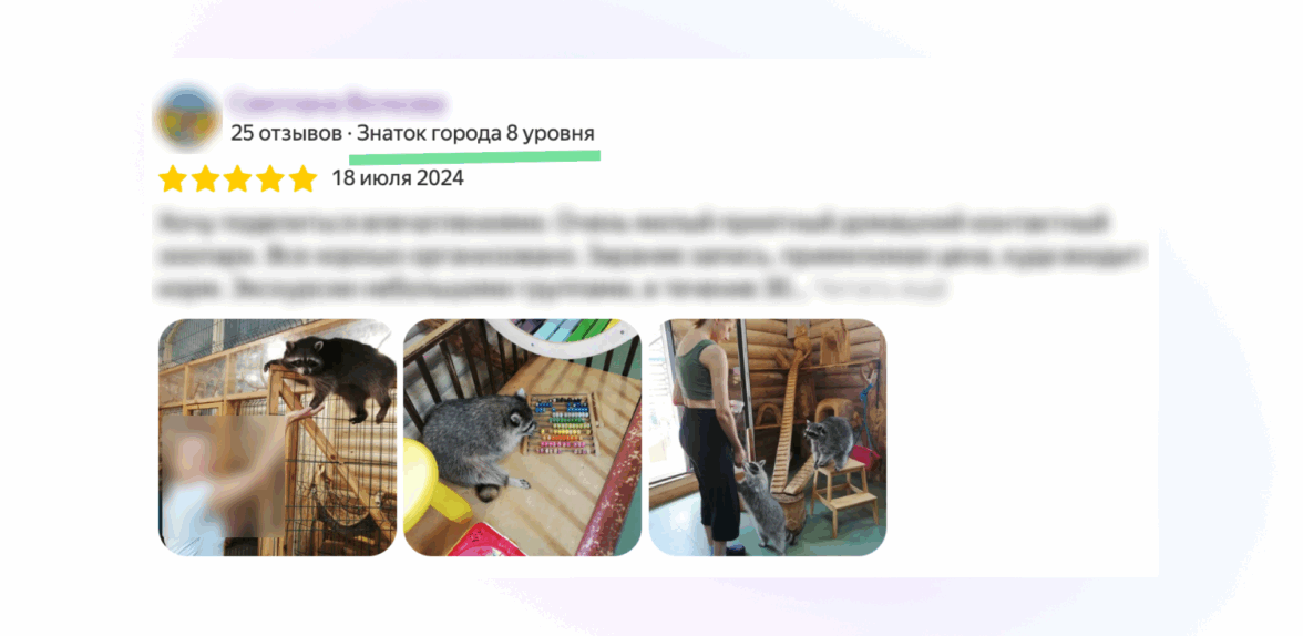 Совсем другое дело — влиятельные авторы. У них высокий уровень, накопленный за десятки отзывов и оценок. Наверняка вы видели в Яндекс.Картах отметки вроде «13-й уровень» или «4-й уровень» пользователя.