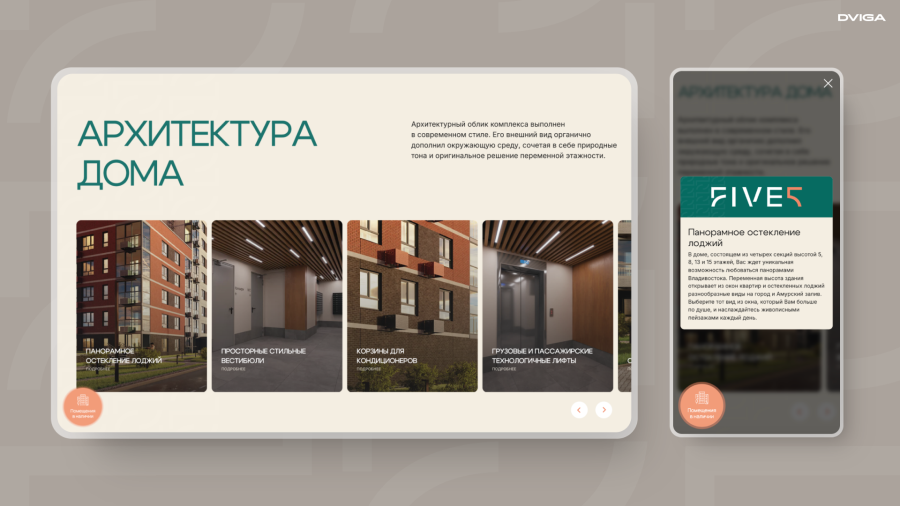 Об архитектурном решении, дизайне входных групп, особенностях фундамента и фасада проекта рассказали в карточках с подробной информацией о задумке и пользе для жильцов.