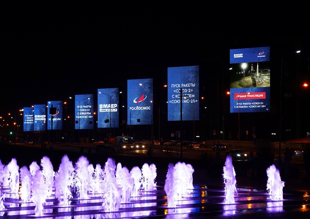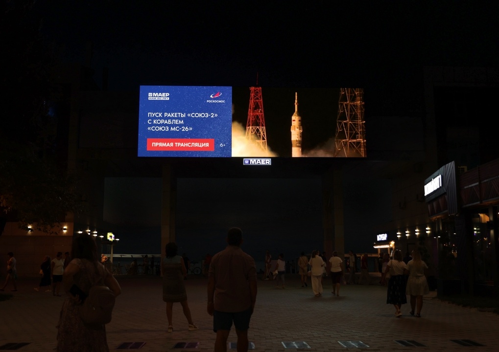В этом году запуск пилотируемого корабля — это уже третья трансляция космических стартов на уличных медиаэкранах. Отметим, впервые в истории трансляцию на уличных экрана с космодрома Байконур Госкорпорация «Роскосмос» и медиахолдинг МАЕР провели 5 октября 2021 года. Тогда за стартом космического корабля «Союз МС-19» с кинематографической миссией в режиме реального времени следили более 6 миллионов человек.