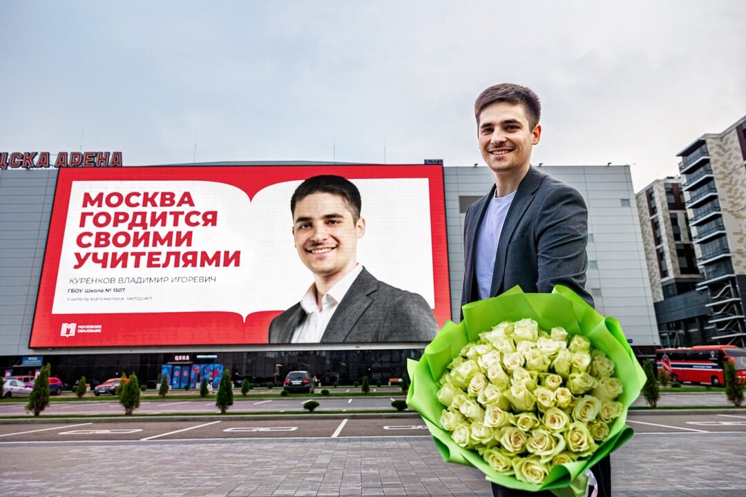 Портреты педагогов со словами благодарности транслировались на медиафасадах и цифровых экранах медиахолдинга МАЕР по всей Москве. Всего за сутки их увидели свыше 4 млн гостей и жителей столицы.