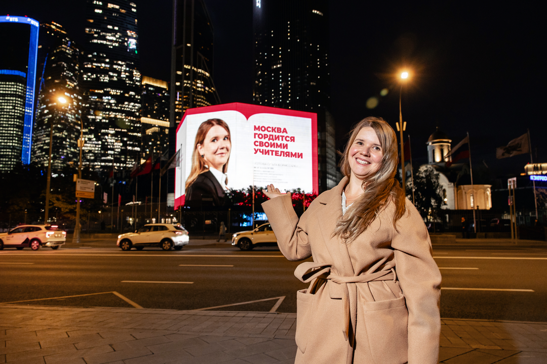 Видеть себя на медиафасадах нашей славной Москвы — это большое счастье, потому что в этот момент ты понимаешь, что ты не только ты, но и то, что все труды не напрасны, и все мы делаем общее дело на благо нашей Родины. поделился учитель русского языка и литературы школы №2109 Елена Башкатова.