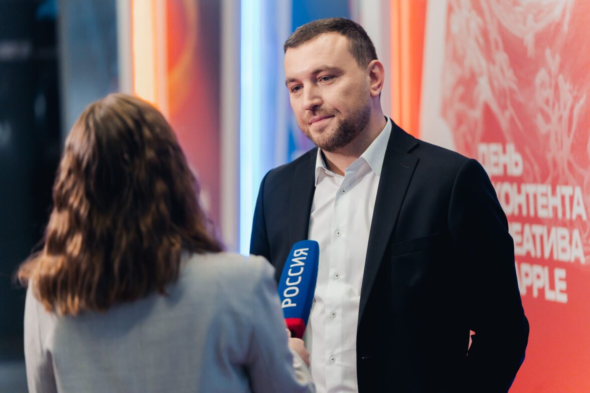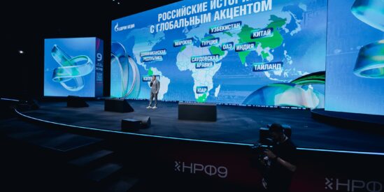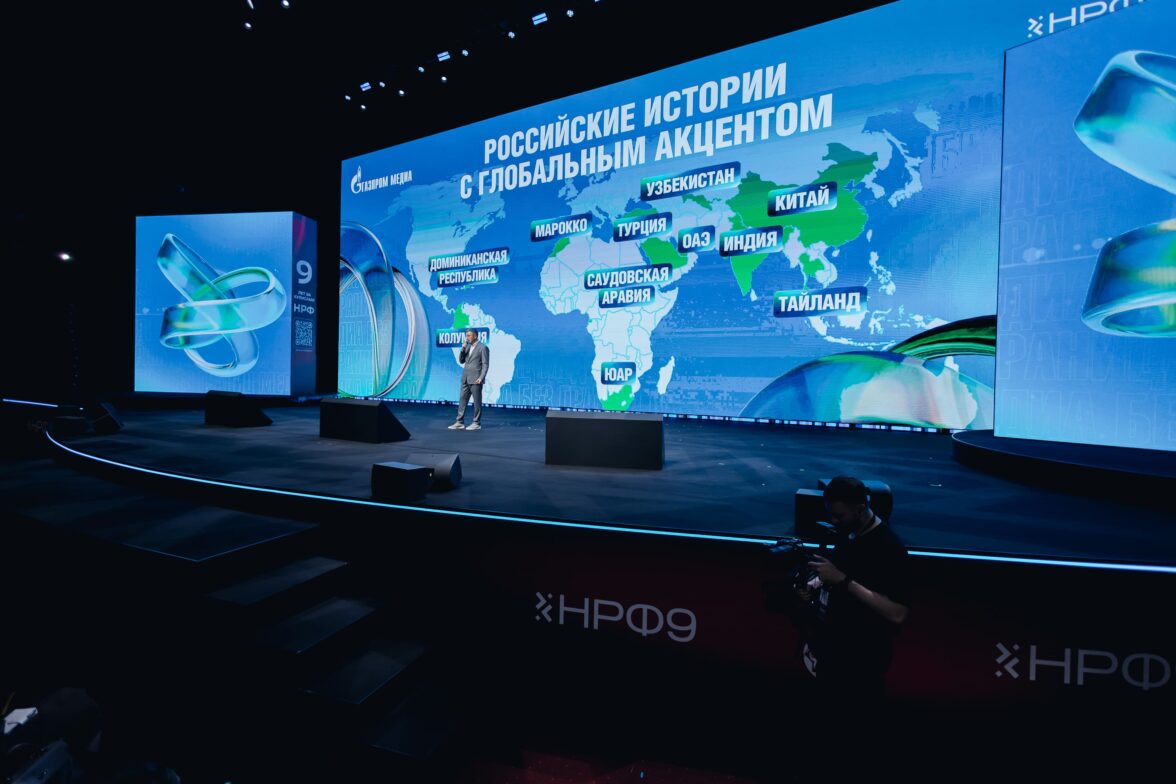 «Медиа без границ». На сцене о стремлении развиваться на мировом уровне заявляет заместитель генерального директора «Газпром-Медиа Холдинга» Борис Ханчалян.