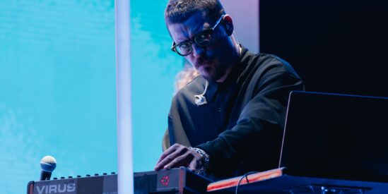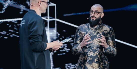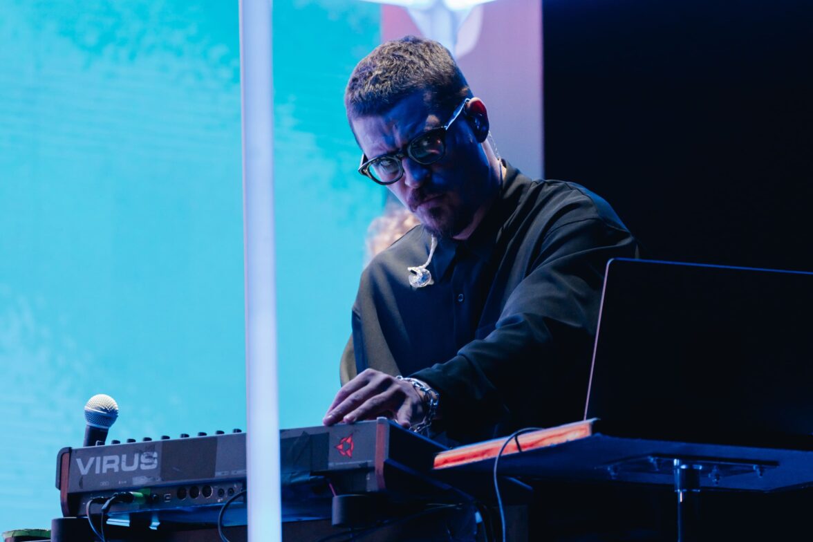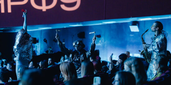 Перфоманс от Яндекс Плюс AdTech, на сцене — Антон Беляев, основатель проекта LAB и Therr Maitz.