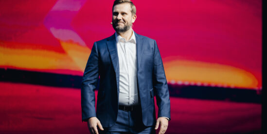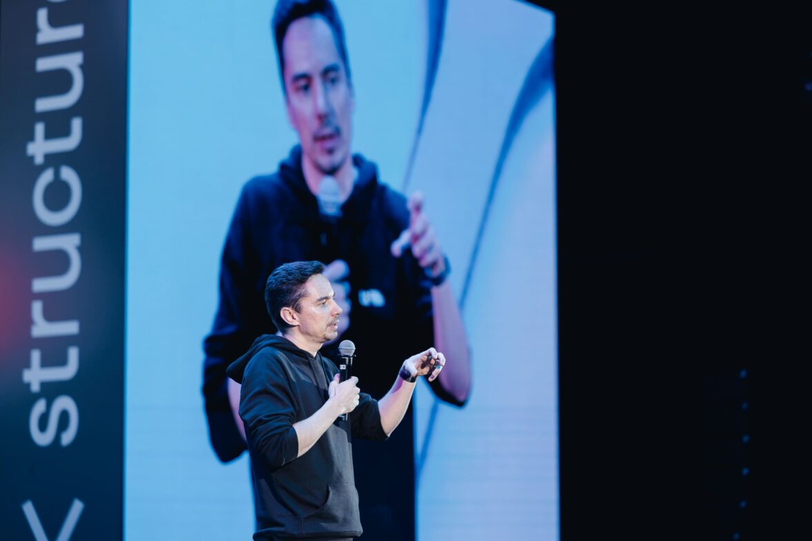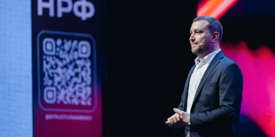 Перфоманс T2, на сцене — директор по монетизации больших данных и AdTech Т2 Антон Мерзляков.