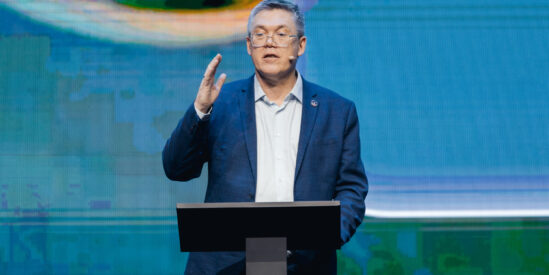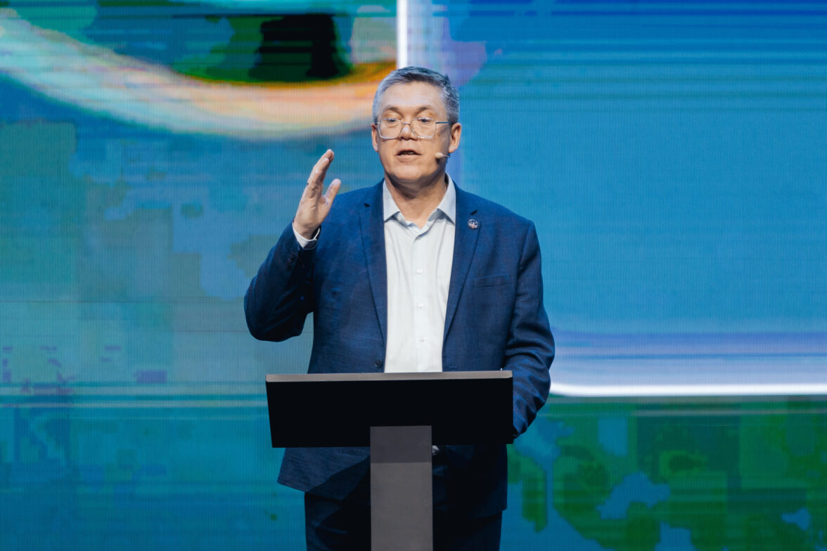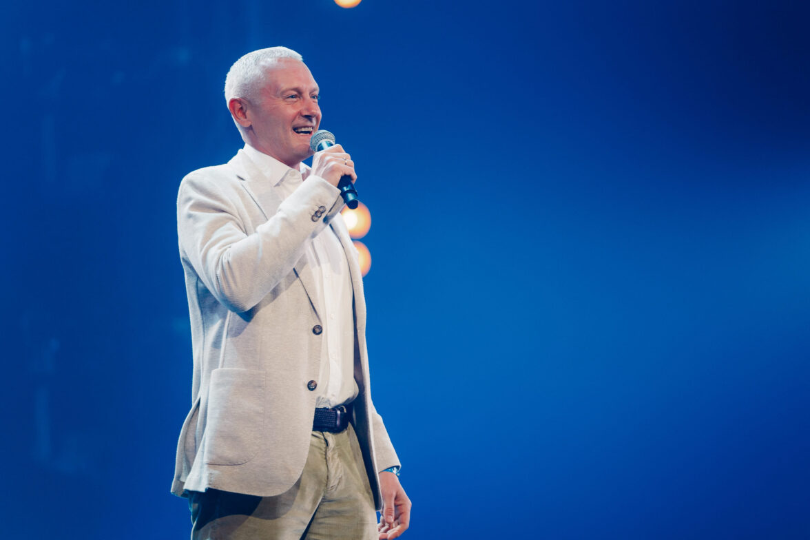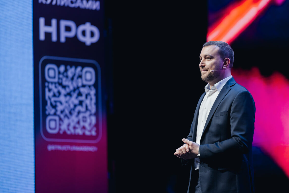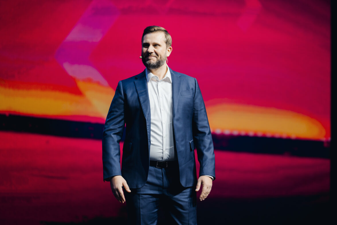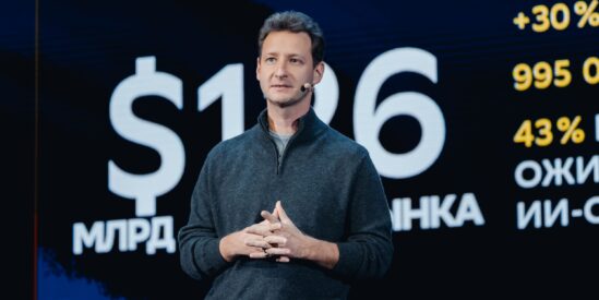 Выступление СберМаркетинга, на сцене — генеральный директор СберМаркетинга Дмитрий Орченко.