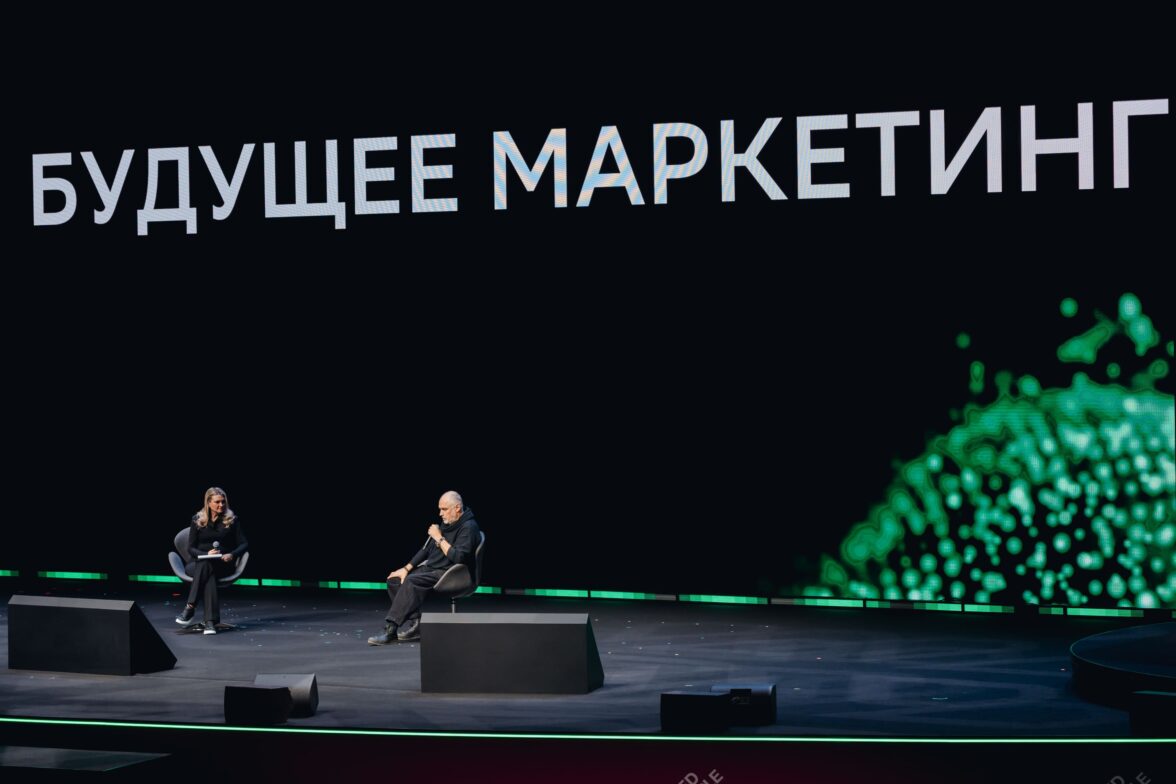«История будущего маркетинга». На сцене — управляющий директор, директор лаборатории дизайна Сбера Владимир Пирожков.