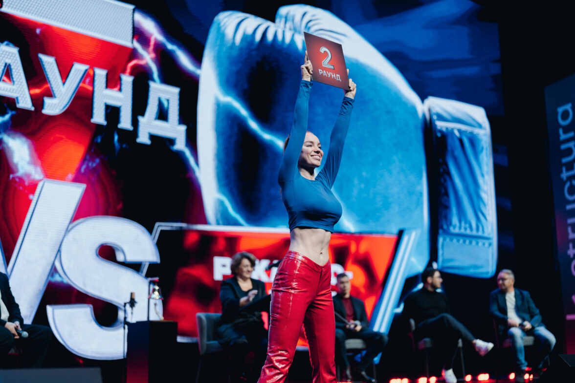 В левом углу ринга — творцы: продюсеры Вячеслав Дусмухаметов, Дмитрий Табарчук (гендиректор «НМГ Студия») и Андрей Золотарев. В правом углу ринга — рекламодатели: главный управляющий NMI Group Андрей Егоров, директор по маркетингу Т2 и вице-президент по маркетингу «Ростелеком» Егор Бормусов и медиадиректор Т-Банка Михаил Горбунцов.