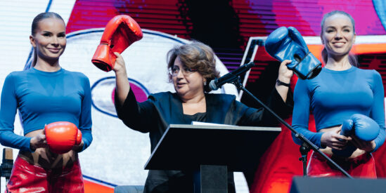 Череду уникальных выступлений начинает баттл между рекламодателями и создателями контента от Национальной Медиа Группы. На сцене — Светлана Баланова, генеральный директор НМГ.