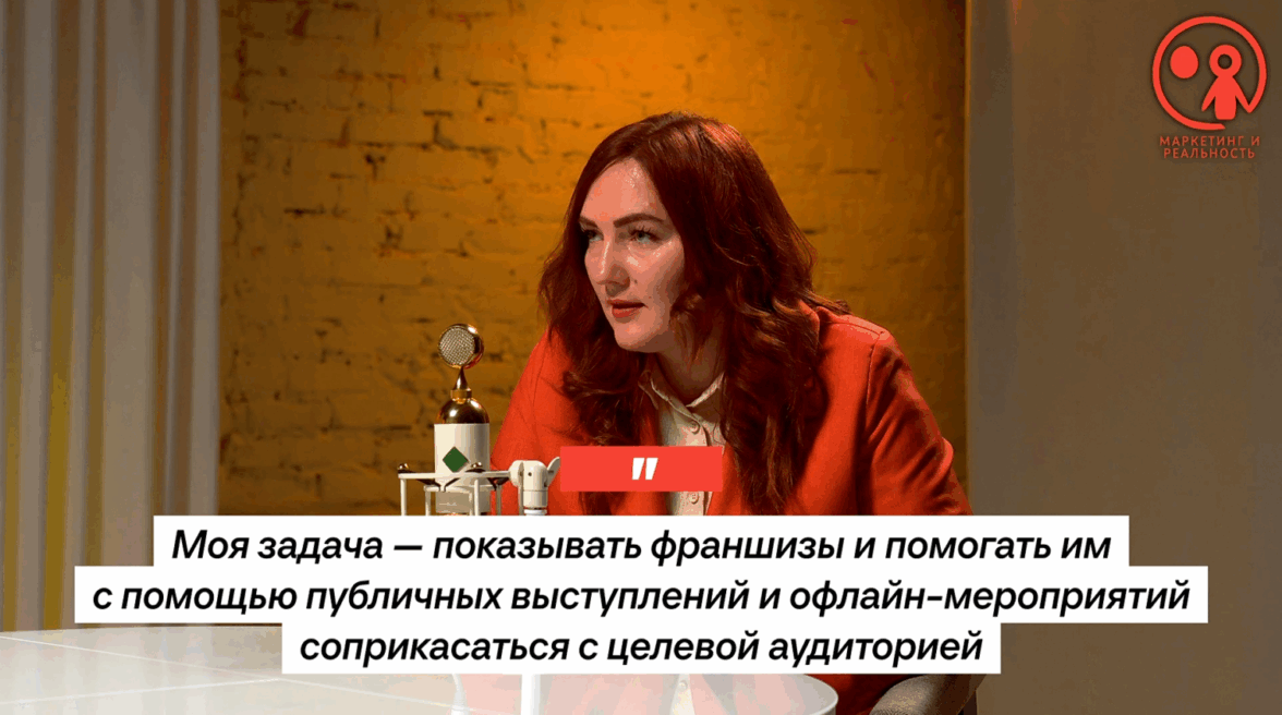 Моя задача — показывать франшизы и помогать им с помощью публичных выступлений и офлайн-мероприятий соприкасаться с ЦА.