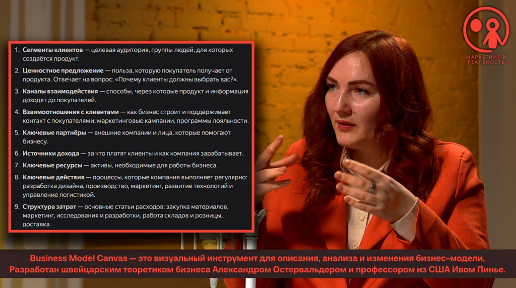 База — это бизнес-модель по Остервальдеру и Пинье (прим.ред.- Business Model Canvas — визуальный инструмент для описания, анализа и применения бизнес-модели, разработанный швейцарским теоретиком бизнеса Александром Остервальдером и профессором из США Ивом Пинье) . Это базовый инструмент для того, чтобы собрать по пазлам составляющие бизнеса. Туда входит ценностное предложение, каналы сбыта, издержки, потоки поступления доходов, партнеры и т.д. Это очень интересная и комплексная работа.