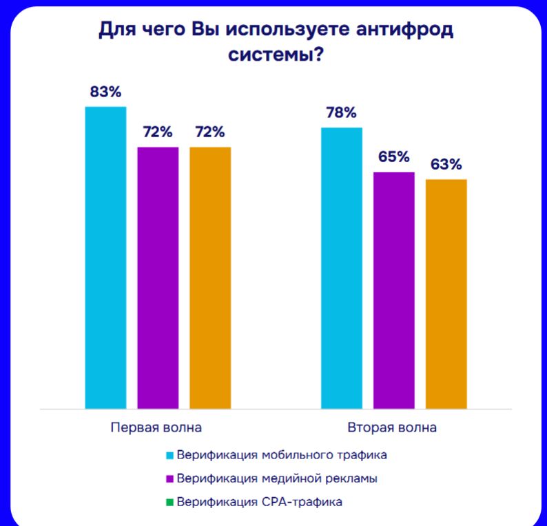 Параллельно, внутри общей позитивной динамики произошло перераспределение приоритетов: антифрод-системы стали реже применяться для проверки мобильного трафика (снижение с 83% до 78%), медийного (с 72% до 65%) и особенно CPA-трафика (Cost Per Action — оплата за конкретное действие пользователя) — с 72% до 63%. Авторы отчета предполагают, что это говорит о смене стратегий — компании концентрируют антифрод-ресурсы на наиболее рискованных или новых видах мошенничества, доверяя проверку стандартных каналов другим методам.