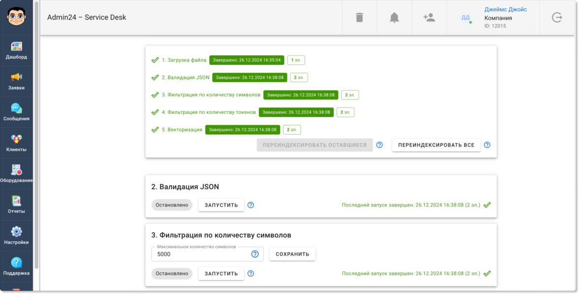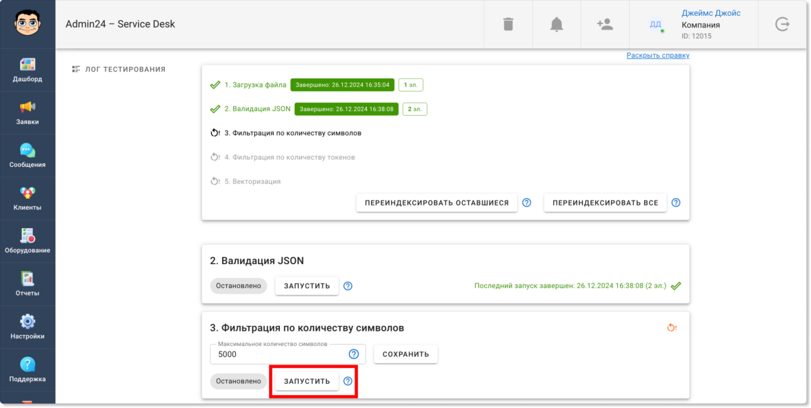 Отметим, что есть возможность запускать и перезапускать отдельные шаги, например, после изменения настроек фильтрации. Это можно сделать, нажав на кнопку «Запустить» рядом с конкретным шагом.