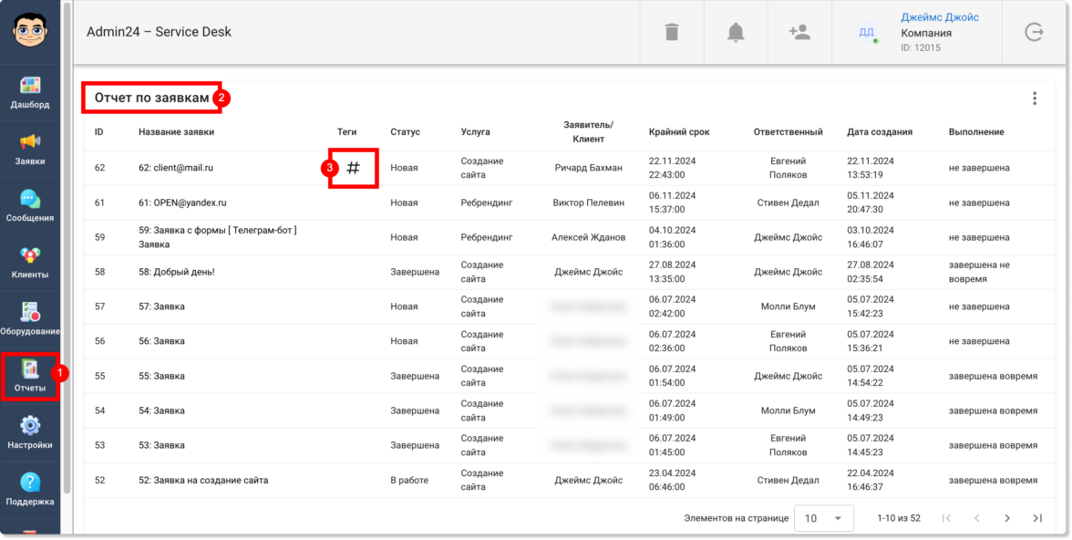 Добавлена настройка для отображения тегов в развернутом виде в отчете по заявкам