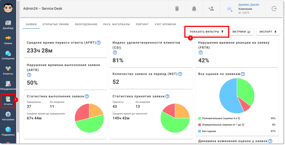 Для мультивыбора дат в разделе «Отчеты» также сначала откройте фильтр, нажав кнопку «Показать фильтры».