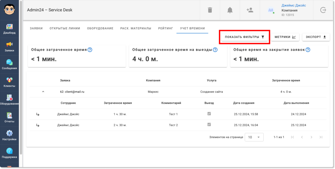 Так, появилась отдельная метрика, которая показывает общее затраченное время на выезды.